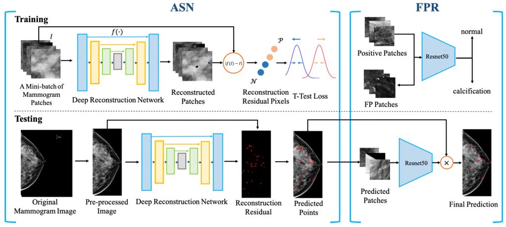 Accurate microcalcification (mC) detection is of great importance due to its high proportion in early breast cancers. Most of the previous mC detection methods belong to discriminative models, where classifiers are exploited to distinguish mCs from other backgrounds. However, it is still challenging for these methods to tell the mCs from amounts of normal tissues because they are too tiny (at most 14 pixels). Generative methods can precisely model the normal tissues and regard the abnormal ones as outliers, while they fail to further distinguish the mCs from other anomalies, i.e. vessel calcifications. In this paper, we propose a hybrid approach by taking advantages of both generative and discriminative models. Firstly, a generative model named Anomaly Separation Network (ASN) is used to generate candidate mCs. ASN contains two major components. A deep convolutional encoder-decoder network is built to learn the image reconstruction mapping and a t-test loss function is designed to separate the distributions of the reconstruction residuals of mCs from normal tissues. Secondly, a discriminative model is cascaded to tell the mCs from the false positives. Finally, to verify the effectiveness of our method, we conduct experiments on both public and in-house datasets, which demonstrates that our approach outperforms previous state-of-the-art methods.