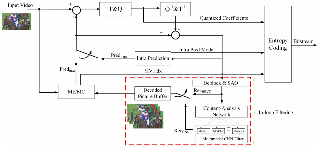 Figure 2 Left: Content-aware CNN in-loop filter for HEVC right: R-D curves