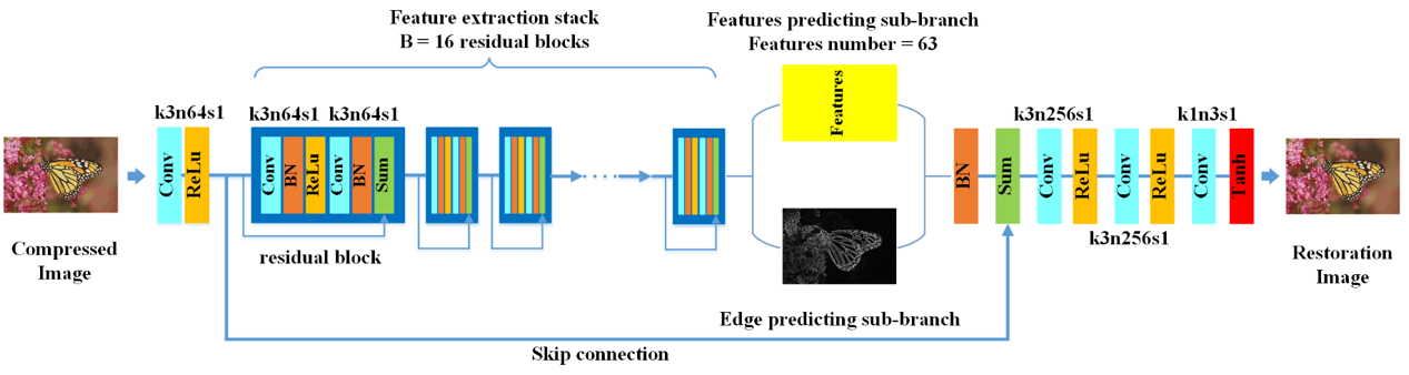 With the explosion of digital media services, there is an increasing demand to compress the images/videos to facilitate storage and transmission, which may degenerate their quality especially at low bit rate. The popular lossy compression standards (e.g., JPEG and HEVC) adopt the block-based compression architecture and quantize every block independently to reduce the amount of transform coefficients. Lossy image compression usually introduces undesired compression artifacts, such as blocking, ringing and blurry effects, especially in low bit rate coding scenarios. Although many algorithms have been proposed to reduce these compression artifacts, most of them are based on image local smoothness prior, which usually leads to over-smoothing around the areas with distinct structures, e.g., edges and textures, leading to poor user experience.