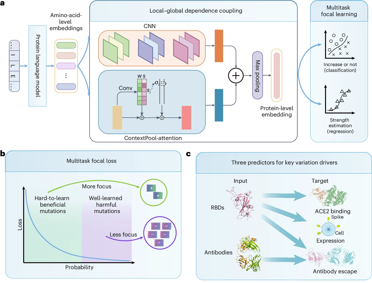 在自然界,物种多样性与生物体内承载功能的蛋白质相互约束,这是因为蛋白质作为功能的载体决定了生物的性状,而这些性状经过选择压力筛选后形成了当下的物种多样性分布结果。立足达尔文进化论及表观遗传学持续新研究的角度,生物演化与环境组成了复杂系统,是与环境的协同演化。受此启发,研究团队基于进化论视角重新审视病毒进化预测难题,提出了解决病毒进化两大本质问题的跨病毒类型、跨毒株类型的通用进化预测模型,为疫苗、药物的快速主动更新以及提高人类对于新发病毒感染的响应速度提供了强大工具,支撑和加速对于物种复杂进化机制的探索。
