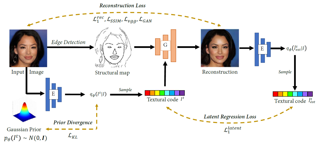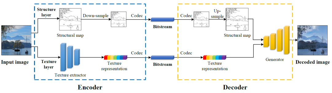 特别地,在提出的概念压缩框架中,图像被明确地分离到结构域和纹理域,并在解码端合成目标图像。结构和纹理表示既充当原始帧数据,又充当可编辑的视觉特征。得益于视觉组件的解耦和合成范式的学习,生成器能够按照任意结构图的逐步渲染给定纹理。因此,除了高效压缩外,所提出的框架还可以通过编辑结构和纹理表示应用于图像处理任务。